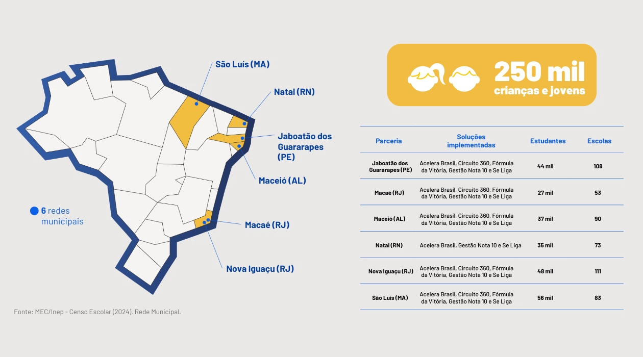 Há 10 anos, a parceria com Natal (RN) fortalece a aprendizagem. Em 2025, ações de alfabetização, recomposição e desenvolvimento integral ampliam oportunidades e transformam trajetórias.